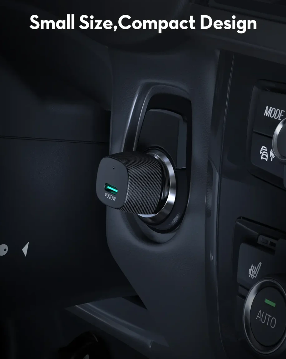 • Compact & Portable: Minimalist design fits easily into any car’s power socket