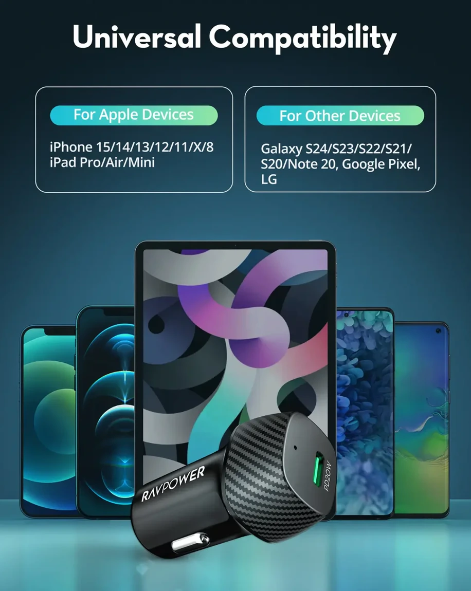 • 20W USB-C PD Output: Fast-charges iPhones, Androids, and USB-C devices
