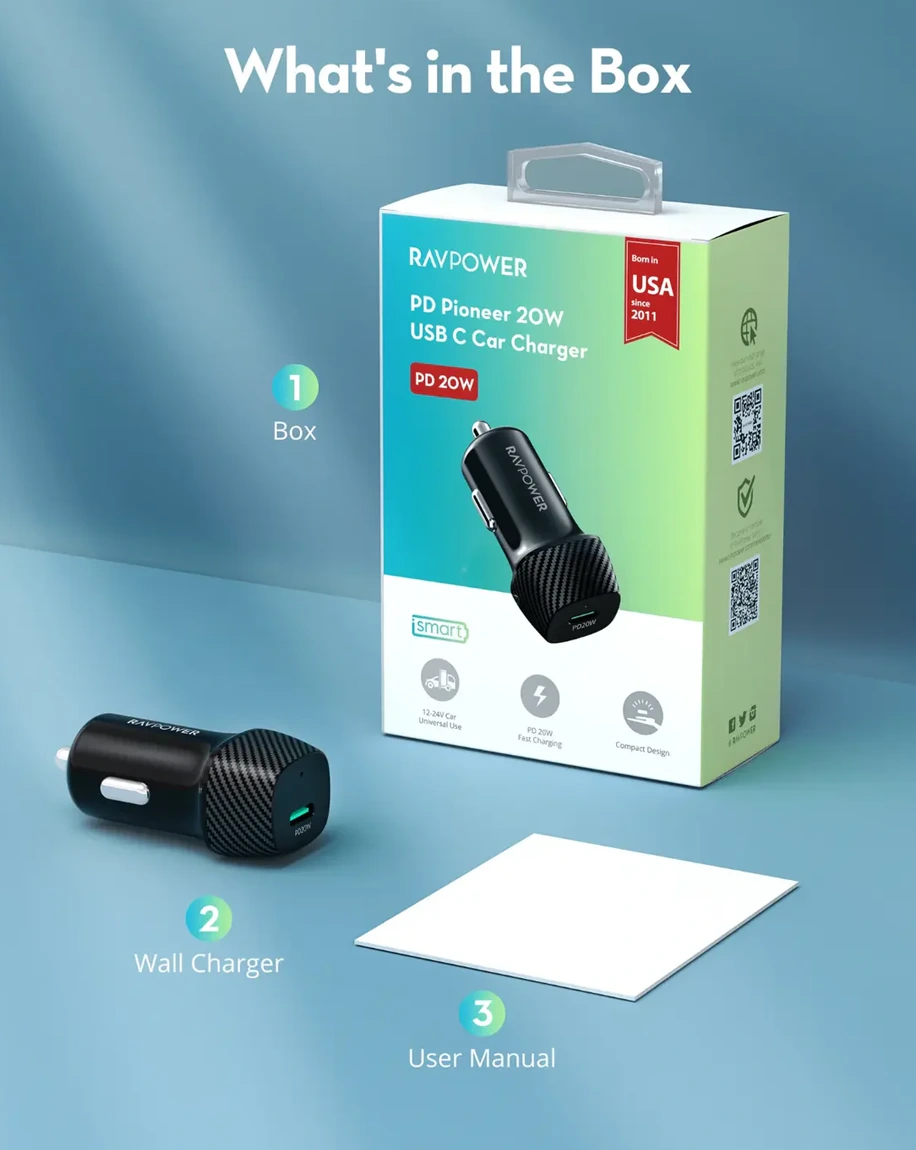 RAVPower 20W Car Charger with Type-C Port - Black - Good quality product with low prices as compared to high prices and bad quality