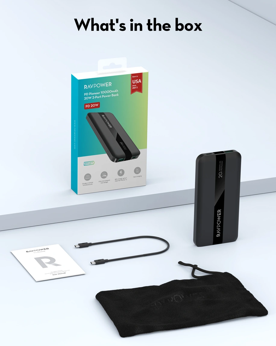 RAVPower pd pioneer 10000mah 20w 2-port Power Bank - Black - Good quality product with low prices as compared to high prices and bad quality