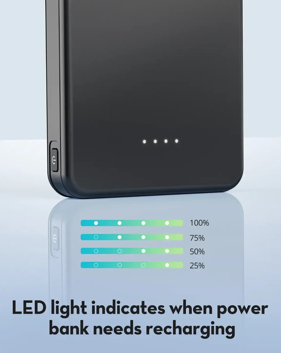 • USB-C Two-Way Charging: Charge the power bank or your device via the same USB-C port.