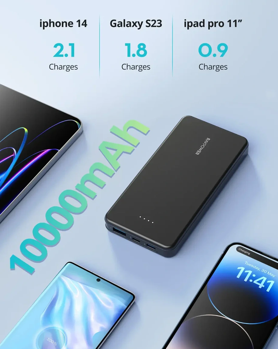 RAVPower pd pioneer 10000mah 15w 3-port Power Bank - Black - Good quality product with low prices as compared to high prices and bad quality