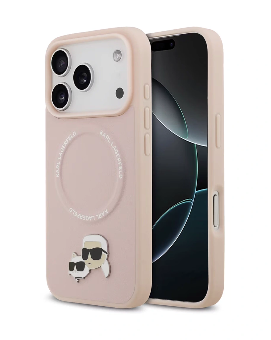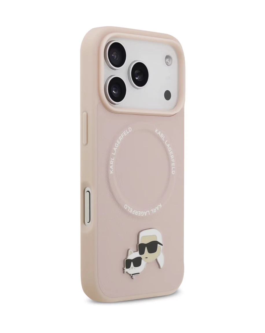 KARL LAGERFELD PU LEATHER CASE WITH KARL & CHOUPETTE HEAD PINS FOR IPHONE 17 PRO MAX - Pink - Good quality product with low prices as compared to high prices and bad quality