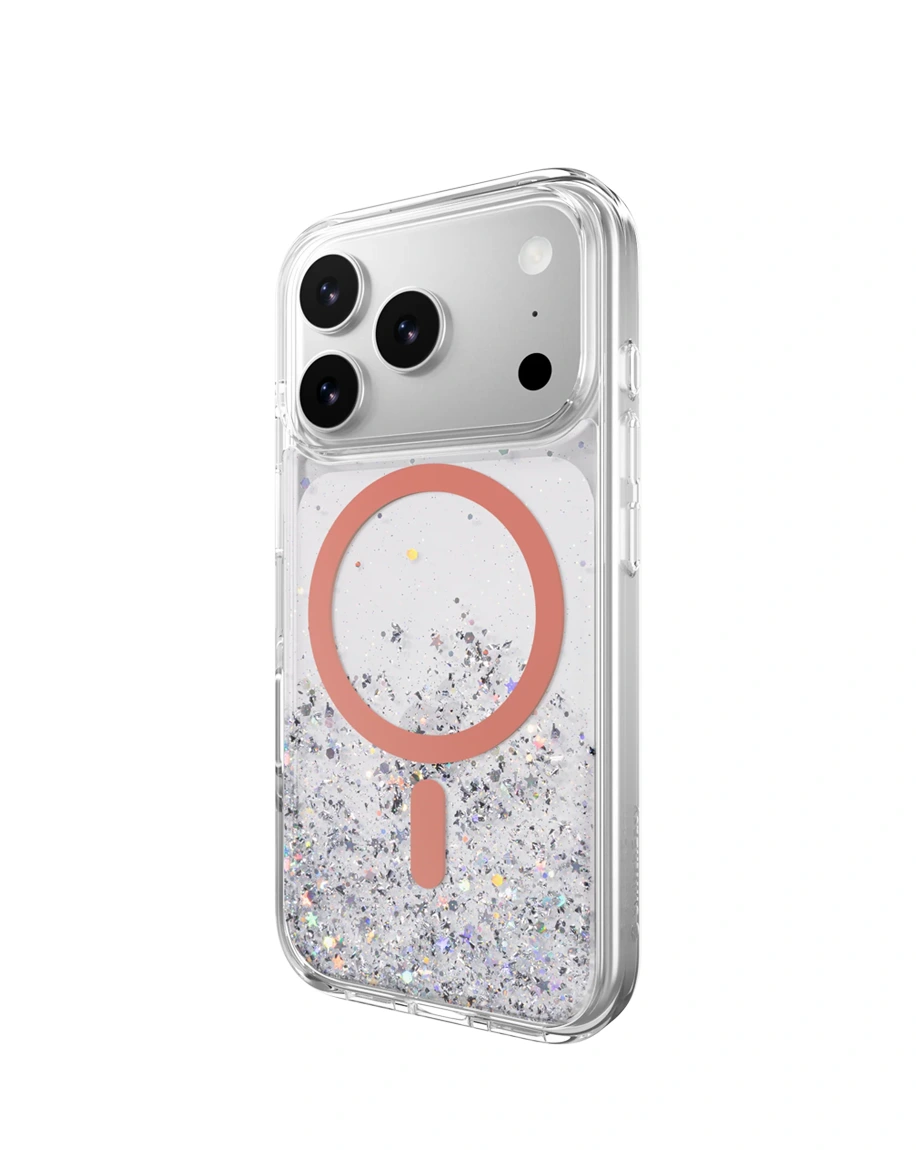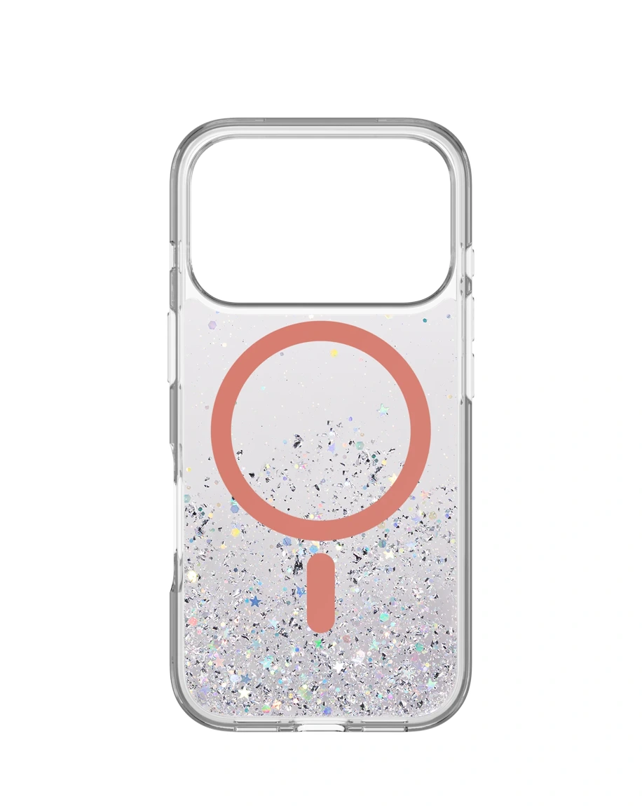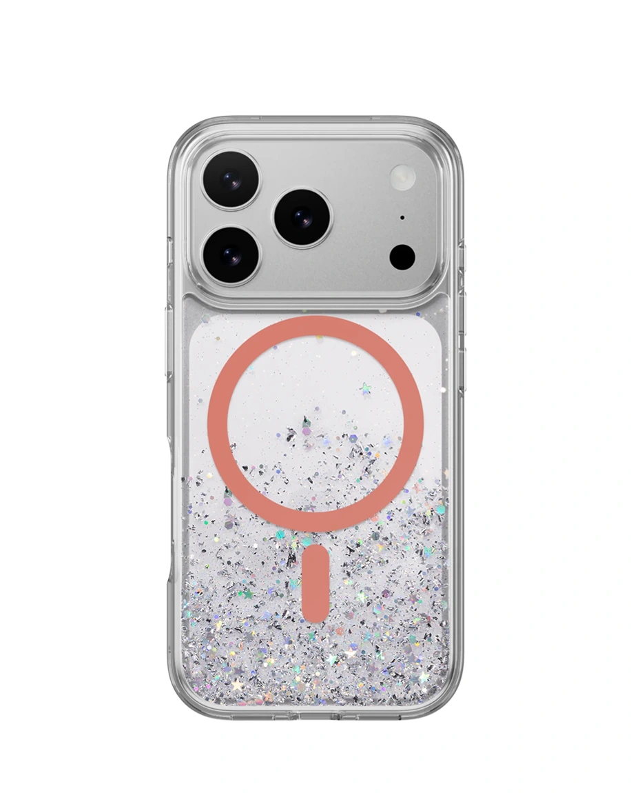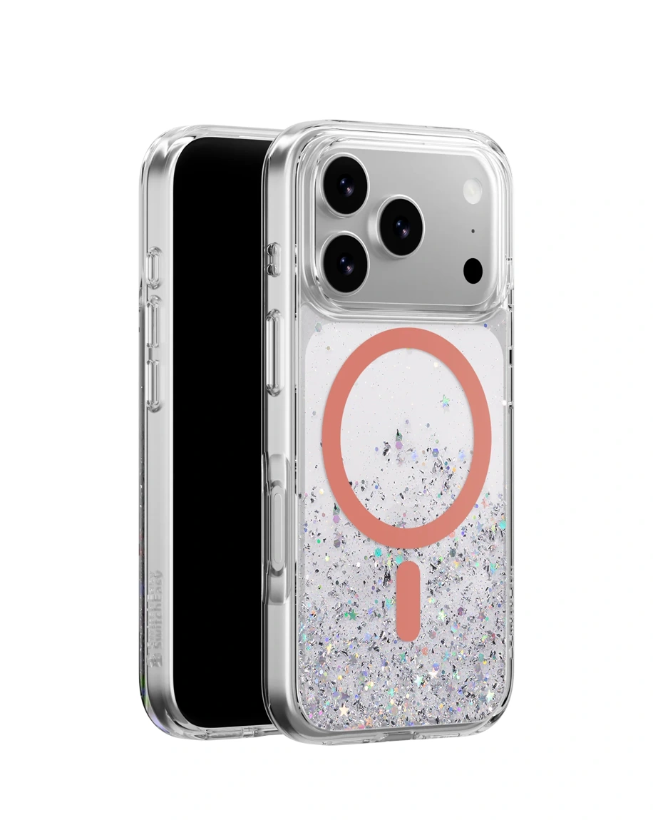 • SwitchEasy Starfield 3D Glitter Shockproof Case for iPhone 17 Pro | MagSafe -Transparent / Coral Ring