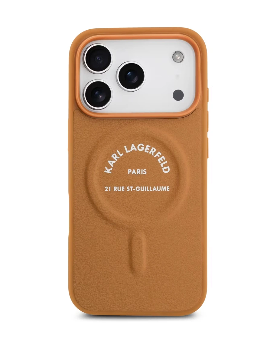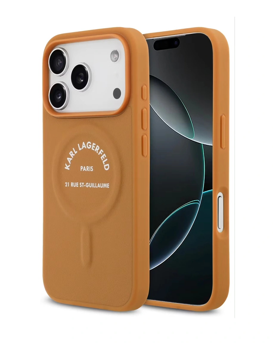 • The Karl Lagerfeld MagSafe PU Case with Karl RSG Logo Buttons in Brown combines utility, style, and functionality in a stylish package for your iPhone 17 Pro Max. It’s MagSafe compatible and has a compact design, so it easily attaches and aligns with your device and accessories. Its lightweight design and comfy grip make it a great daily companion. It offers both convenience and style. With its simple snap-on installation design, it fits your phone snugly without adding extra bulk. The case provides reliable drop protection. It keeps your device sleek. Plus, it protects against bumps and drops. The packaging focuses on sustainability. It reflects a moderneco-friendly approach. This design reduces environmental impact while still looking good. The Karl Lagerfeld MagSafe PU Case with Karl RSG Logo Buttons blends high-end style with dependable performance. Its protective features and Karl Lagerfeld's unique design make it perfect for those who value both fashion and function.