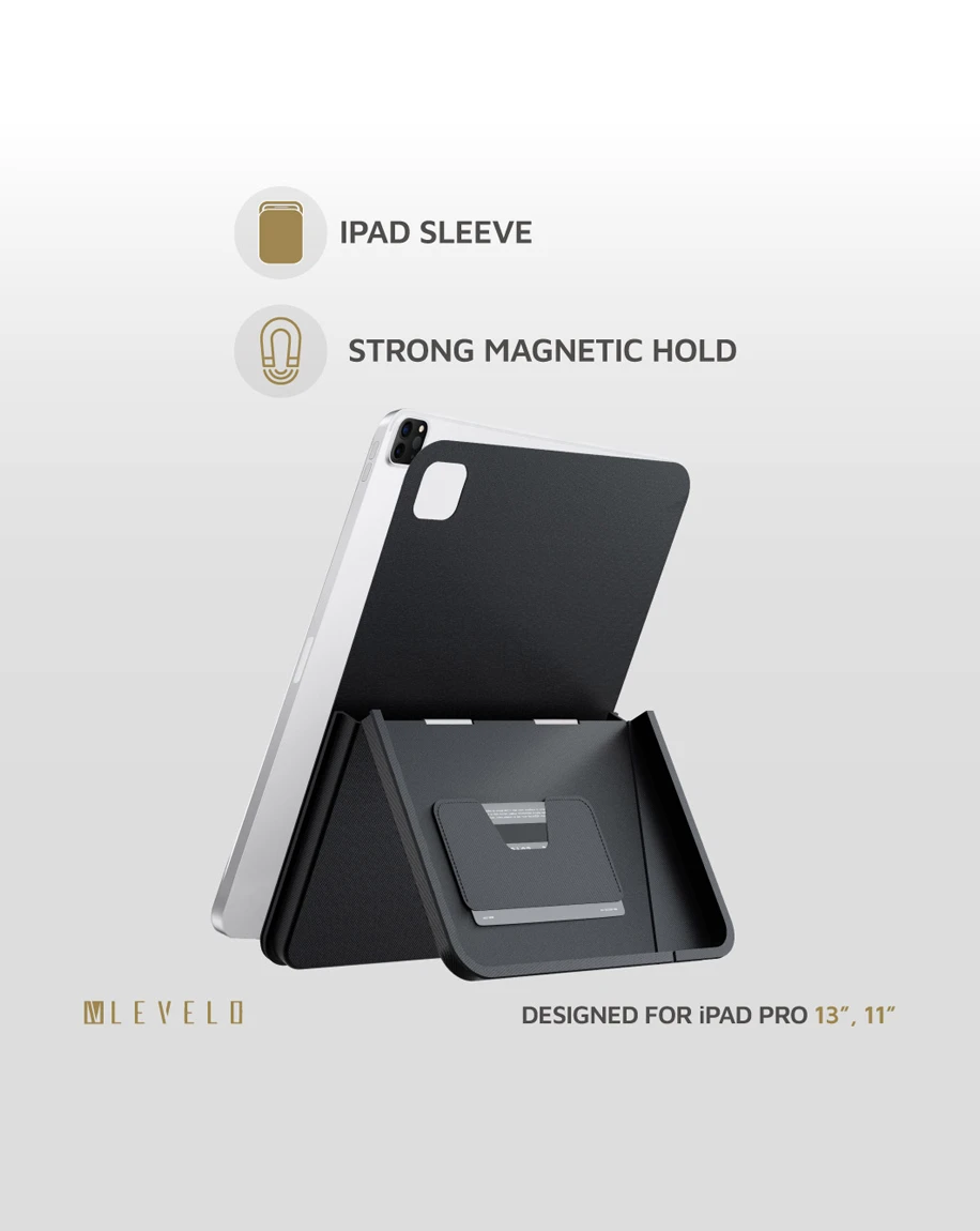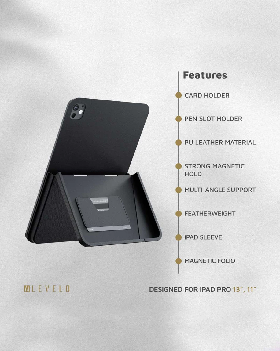 Elevate and protect the iPad experience with the sleek Black Levelo Omni 4-in-1 Case. Versatile and functional, this is a case that marries style, durability, and convenience to bring together an assortment of features that make using an iPad a more enjoyable and efficient experience. A card holder and a pen slot holder are built inside the case for storing your important things so you may reach them any time you want. The high-quality PU leather material provides the case with a quality, plush feel while providing great protection against scratches, drops, and everyday wear and tear. The strong magnetic hold keeps it snugly in place and keeps you concerned, with ease of access. Multi-angle support provides comfortable use in any situation: web browsing, watching videos, or typing. With its featherweight design, the Levelo Omni 4-in-1 Case does not add much bulk to your iPad and maintains its slim profile for easy portability. The removable iPad sleeve is there for extra protection, while the magnetic folio closes seamlessly with a professional look.