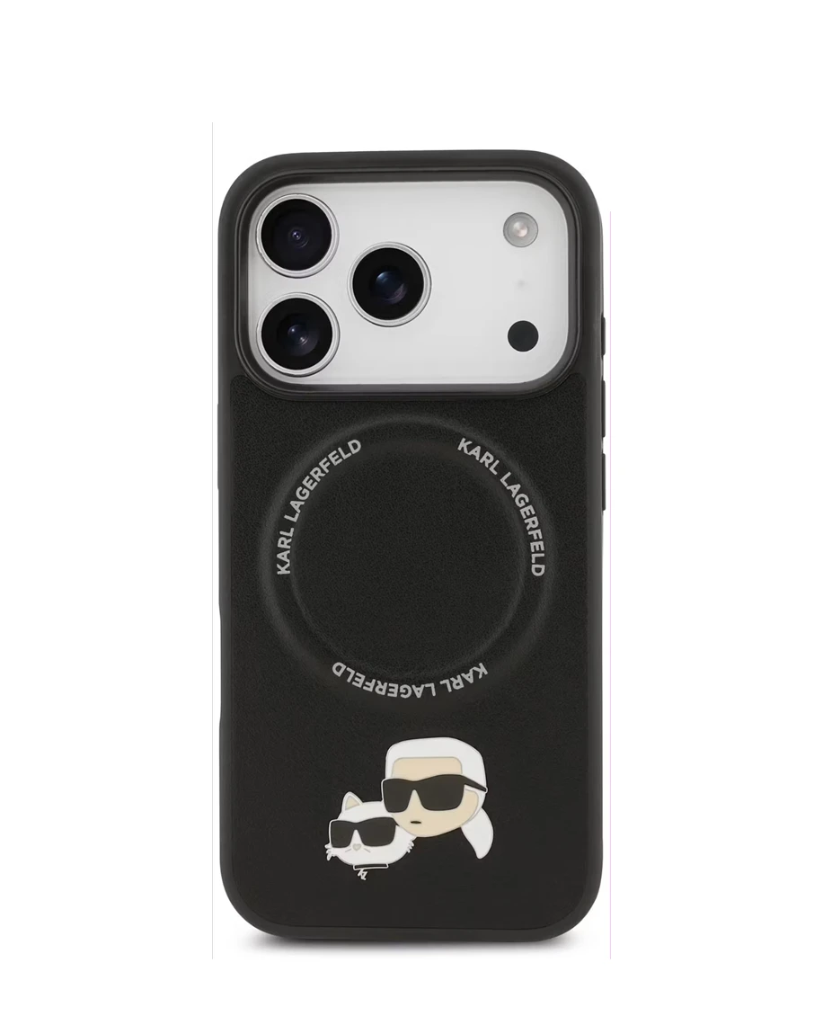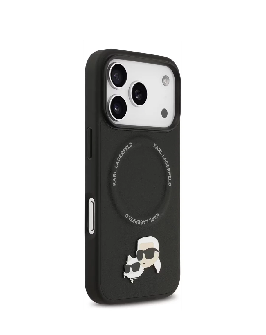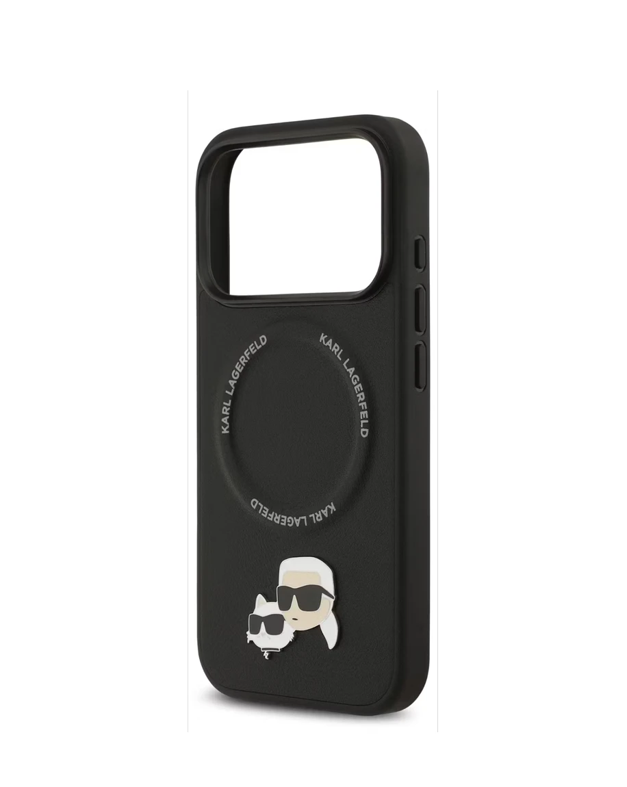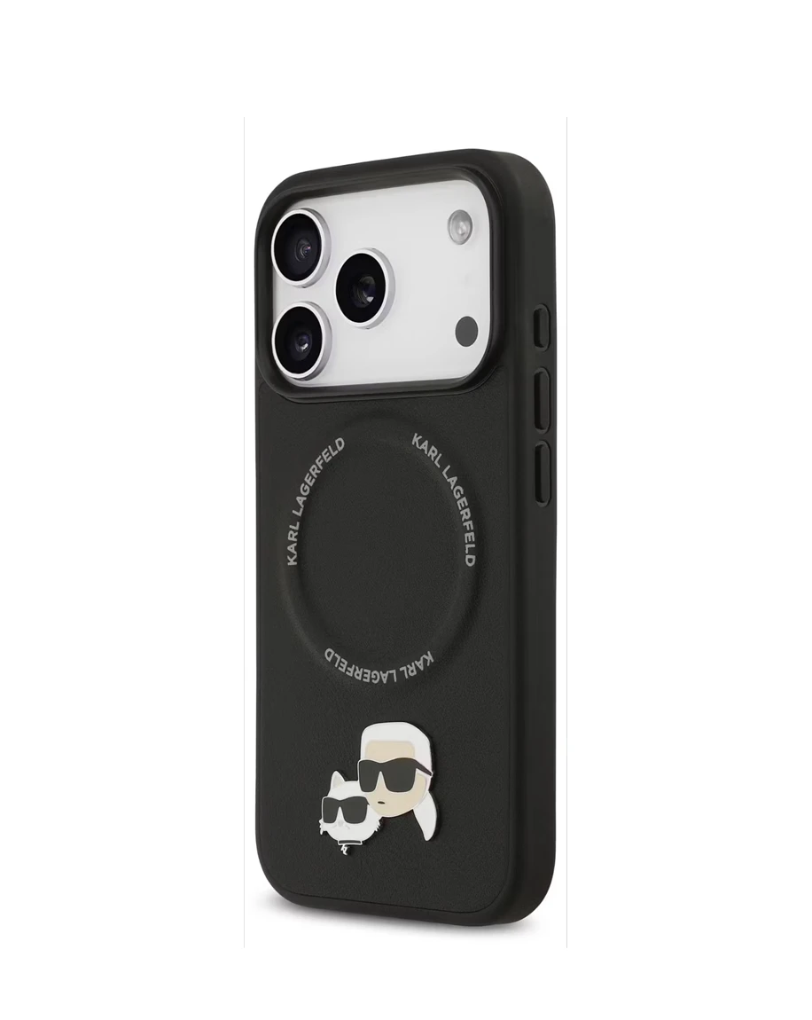 • The Karl Lagerfeld PU Leather Case with Karl & Choupette Head Pins in Black is the ultimate blend of style, protection, and functionality for your iPhone 17 Pro. With its compact profile, this case offers the most protection with the least amount of bulk. Because it's MagSafe compatible, connecting to your charging accessories will be easy. Drop protection keeps your phone safe from accidental falls and bumps. Plus, its lightweight design and comfy grip make it easy to hold. You can feel the luxury right away. The fit is quick and secure, thanks to the easy snap-on installation. The eco-friendly packaging shows Karl Lagerfeld's commitment to luxury that's good for the planet. The Karl Lagerfeld PU Leather Case with Karl & Choupette Head Pins adds a stylish and unique touch. They reflect the designer's lasting style. This case perfectly combines style and function. It protects your iPhone while offering everyday durability. Whether you're looking for a standout appearance or reliable performance, it meets your needs.