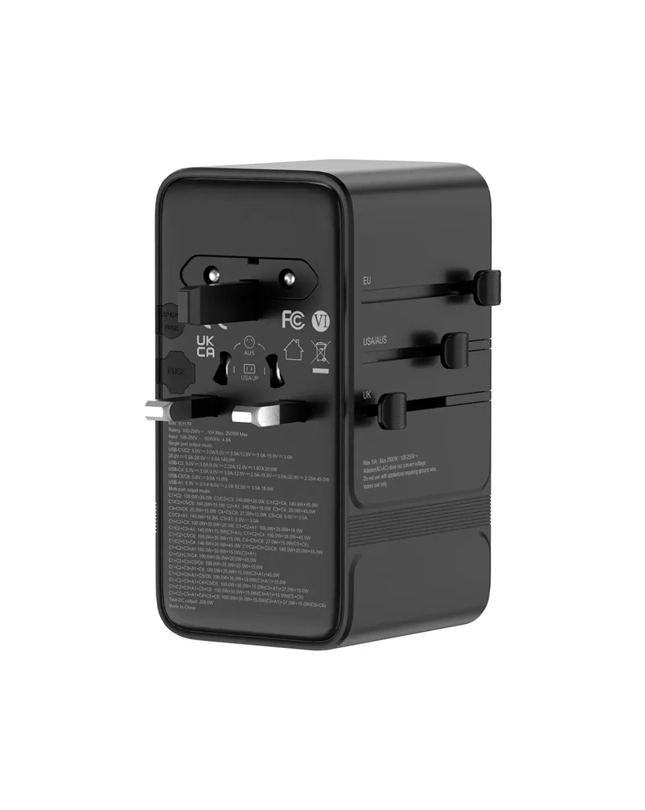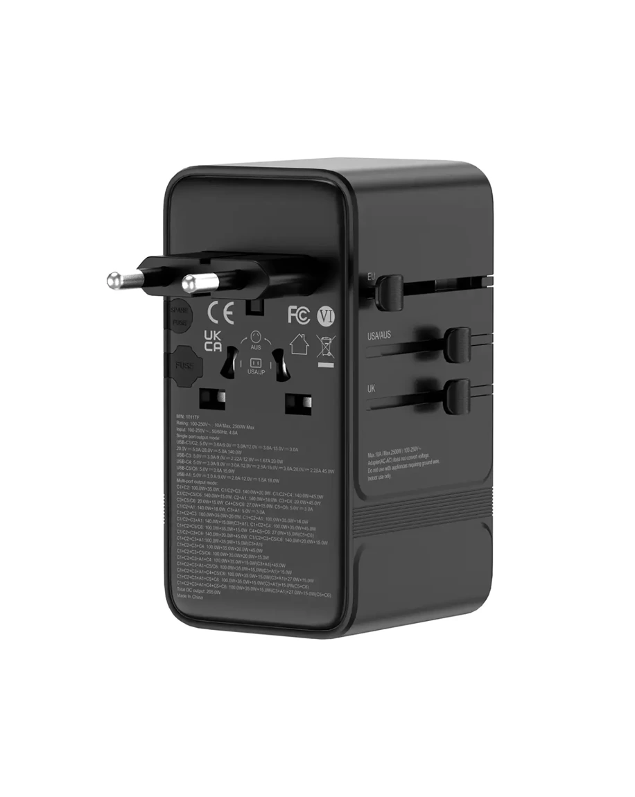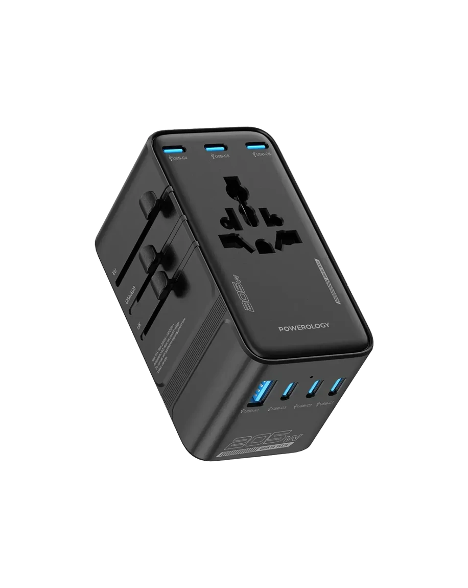 The Powerology Spetrova GaN Multi-Port Universal Adapter in Black not only provides an outstanding charging solution but also effortlessly powers different devices all at once.