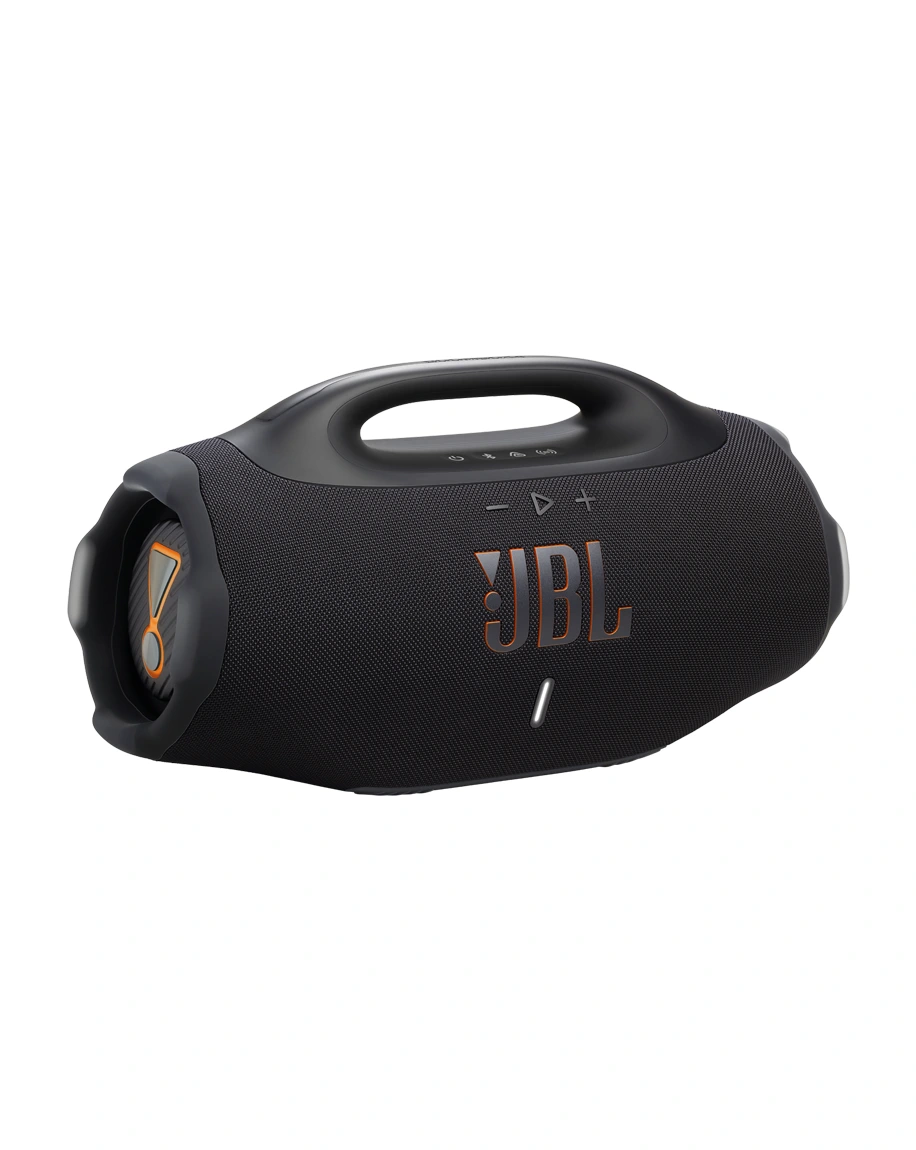 | - We turn it up our way—anywhere. The all-new JBL Boombox 4 is bigger, bolder, and better than ever, with powerful JBL Pro Sound that stays loud and clear, with deep thumping bass. AI Sound Boost analyzes our music in real time and adjusts the sound to give us more power with less distortion, even when we turn it all the way up. It packs two bigger woofers, two tweeters and three passive radiators, so every track hits harder and sounds cleaner. When we want to fine-tune the vibe, we just switch between deep or vibrant punchy Bass Boost settings to match our mood. We gave the classic Boombox design a fresh upgrade—it’s larger but lighter, so we can take it wherever the party goes: the beach, the block, or the backyard. It’s IP68 waterproof and dustproof, so weather’s never a dealbreaker. And, with up to 34 hours of playtime (thanks, Playtime Boost), we’re set for the long haul. With the JBL Boombox 4, we carry the mood and the energy, everywhere we go.