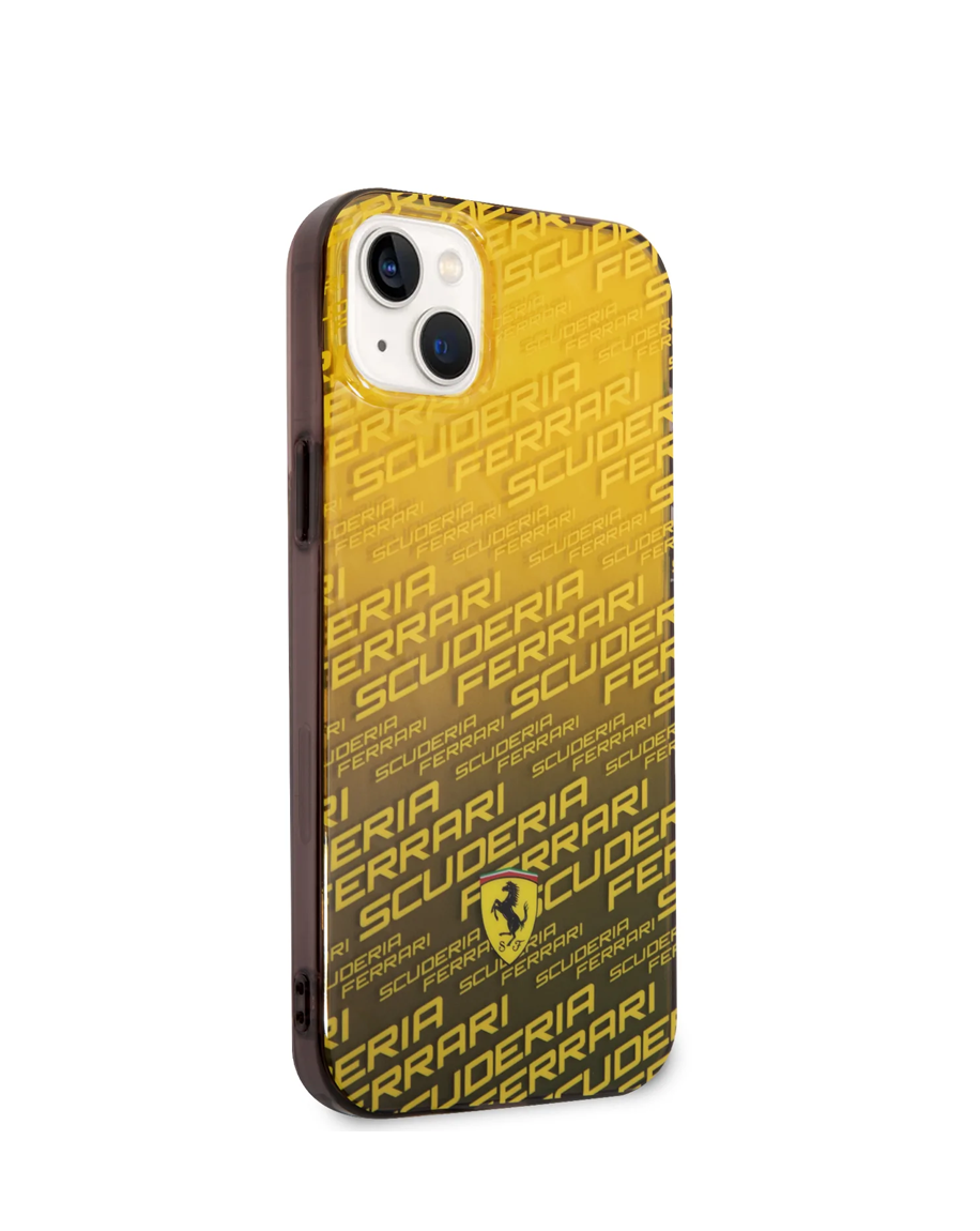 Ferrari Gradient PC/TPU Case With Allover Scuderia & Dyed Bumper For iPhone 14 - Yellow