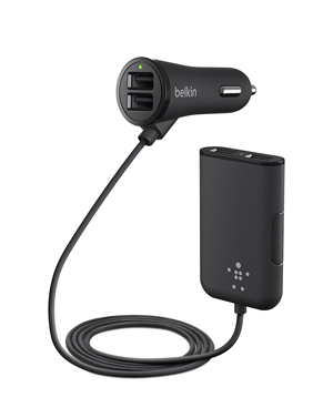 Charging is no longer limited to the front seat with the Road Rockstar. Designed with a 6ft cable, and 4 USB ports, you can seamlessly charge 4 devices simultaneously while on the go. 2 front seat USB ports charge smartphones at optimum speeds with shared 2.4A, while the extendable hub allows backseat passengers to charge 2 tablets simultaneously at 2.4A per port, perfect for watching movies on long road trips.