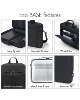 The Eco Slim Case BASE is a light, slim laptop case. Devices between 13 and 14.1" are well protected in the padded notebook compartment. The case is comfortable to carry thanks to its padded carrying handle and adjustable shoulder strap. The extra compartment on the back is especially handy for easily storing documents. Your smartphone or other smaller items like cables, pens or chargers can be stored in the convenient front pocket, so they are always to hand. The Eco Slim Case BASE is therefore perfect for you if you are always on the go and want to support the recycling of PET bottles with an eco-friendly case.