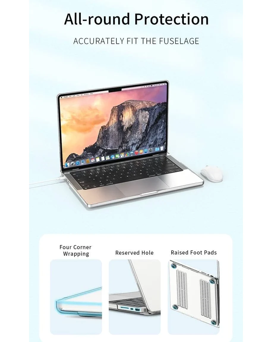 • Full cover Macbook protective case. High & hollow design rubber bottom for heat dissipation.
