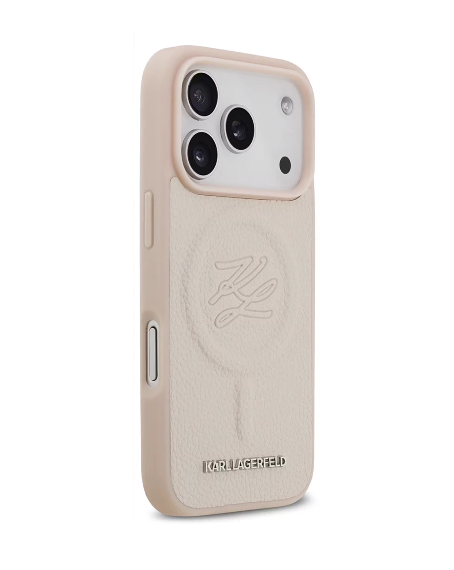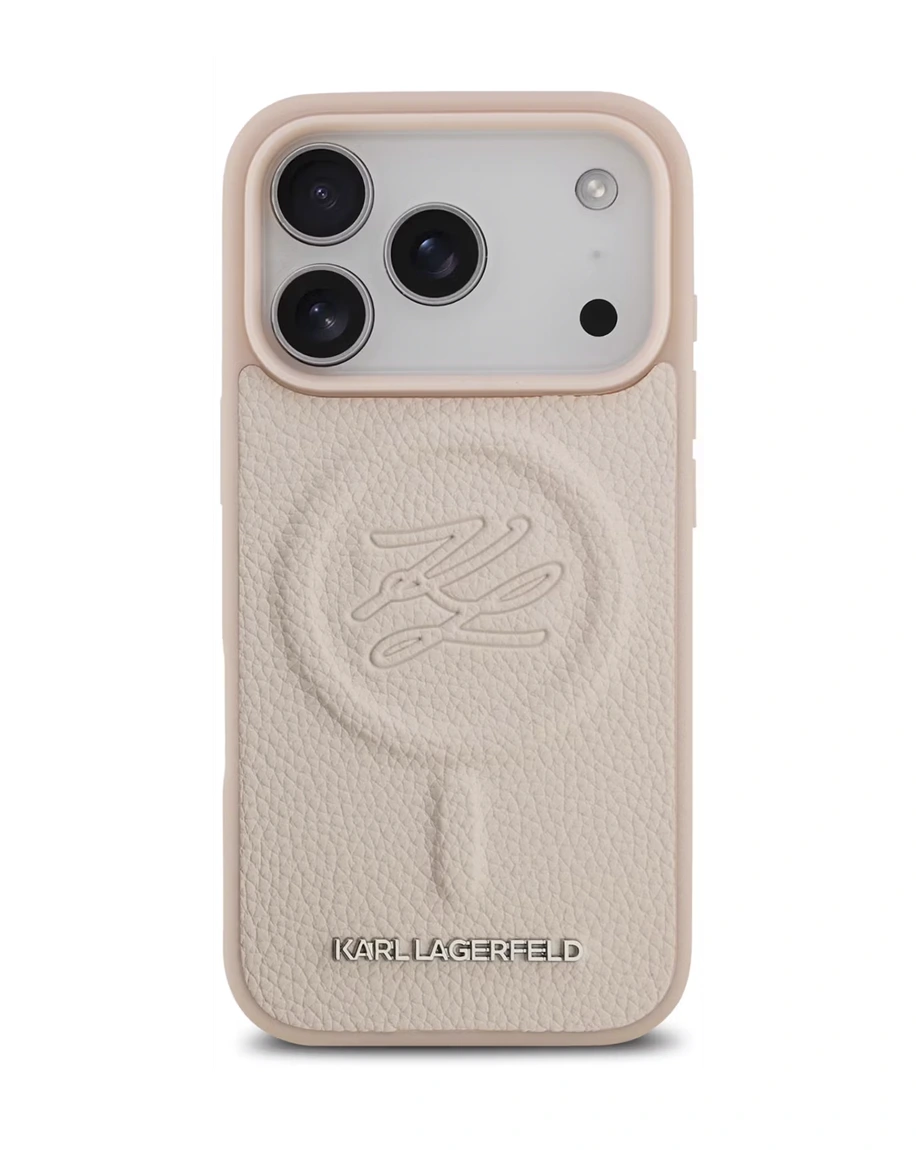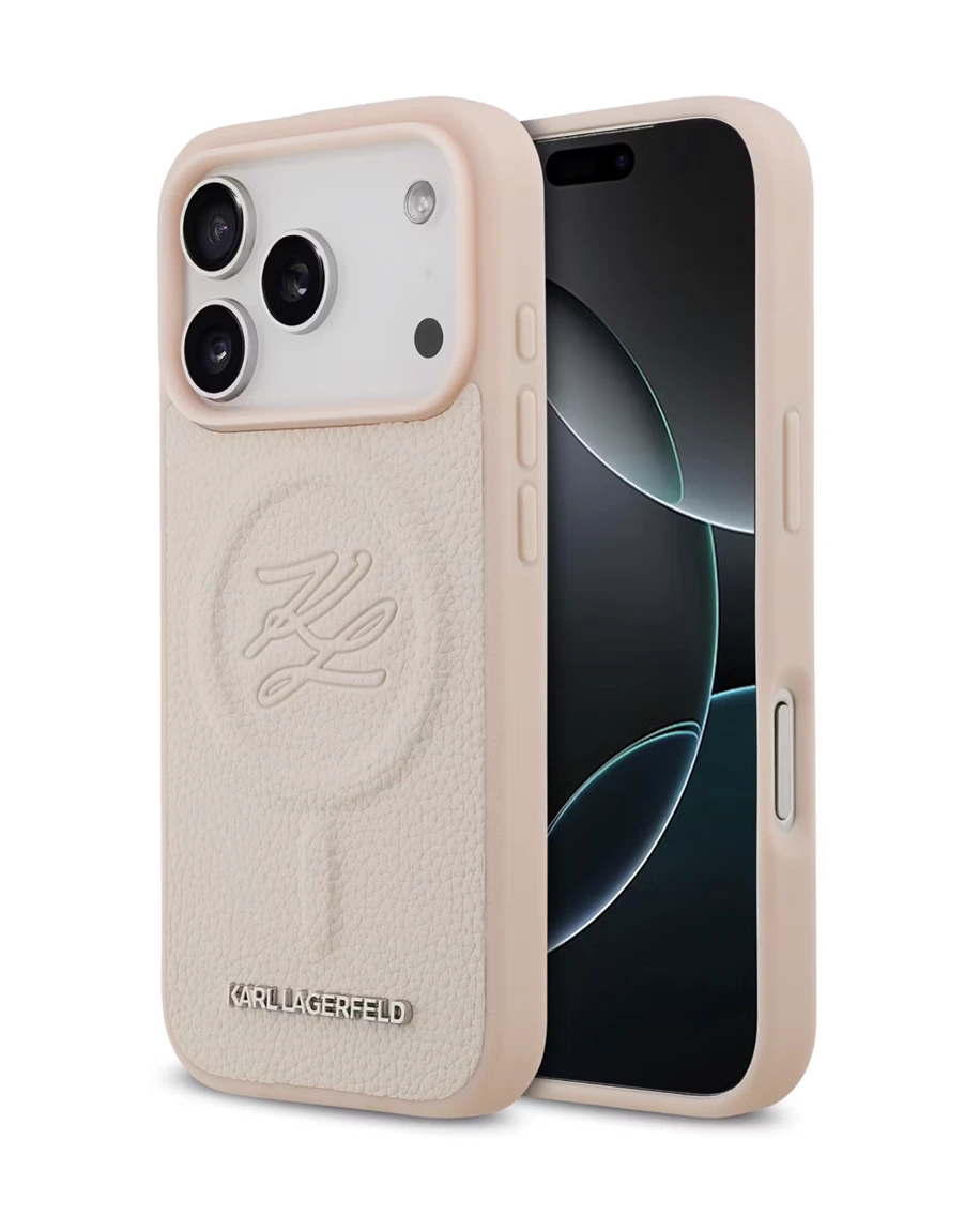 • The Karl Lagerfeld MagSafe PU Leather Case with Initial Debossed Logo in Pink protects your iPhone 17 Pro Max by fusing fashion and utility. Its slim design offers solid drop protection while keeping a clean, stylish look. Because the case is MagSafe compatible, you may charge it easily and securely with your charging accessories. With the speedy installation made possible by the easy snap-on function, protecting your phone is hassle-free. This case is great for daily use. It’s lightweight and has a nice grip, making it comfortable and stylish. It shows Karl Lagerfeld's dedication to eco-friendly luxury. Plus, it uses sustainable packaging. The Karl Lagerfeld MagSafe PU Leather Case with Initial Debossed Logo looks great. This adds a subtle designer touch. This case perfectly blends reliable protection with stylish accessories. It keeps your iPhone safe, trendy, and ready for anything.