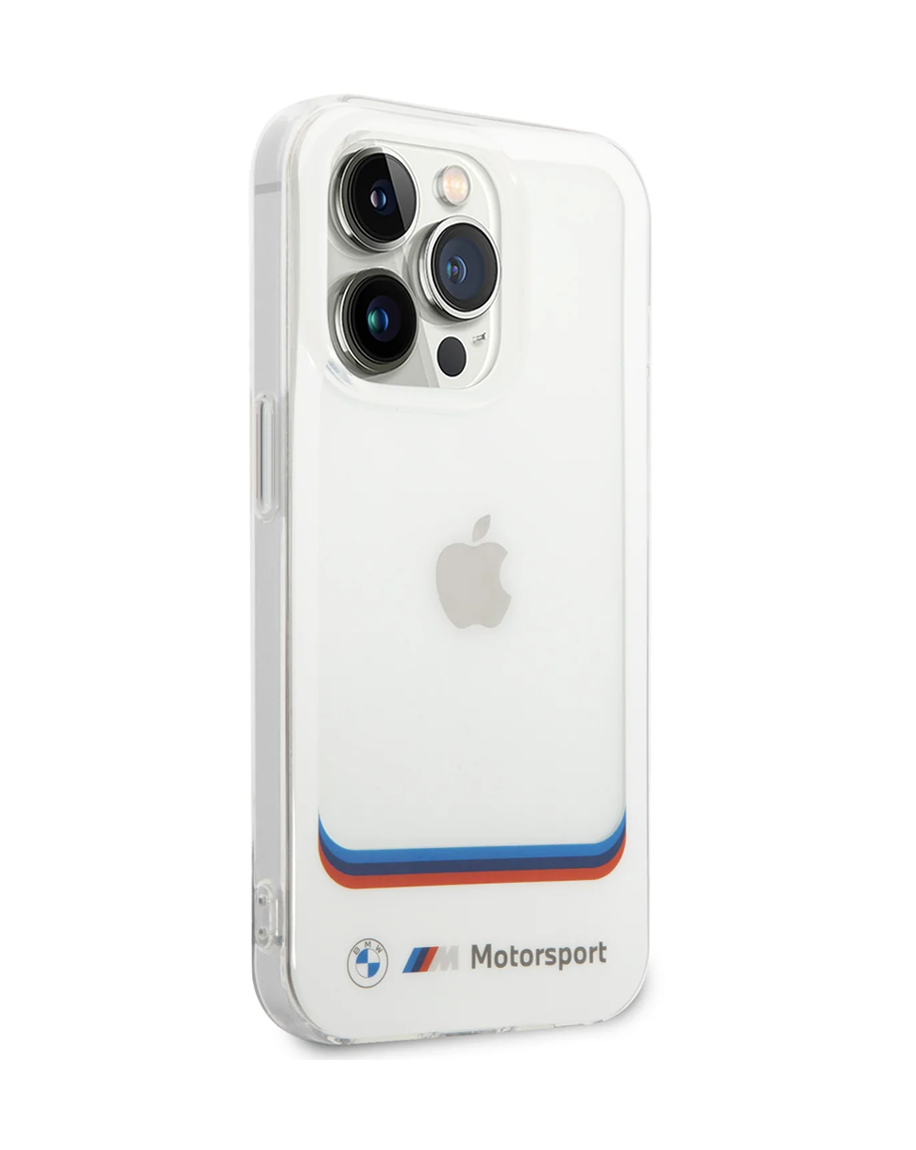 BMW Motorsport Collection PC/TPU ,IML Printed Tricolor Stripes Translucent Zones & Printed Logo For iPhone 14 Pro Max - Black