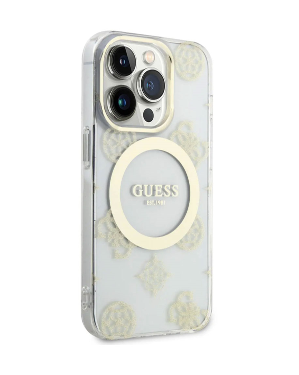 GUESS Hard Case PC/TPU Flower for iPhone 15 Pro Max - Gold / Transparent