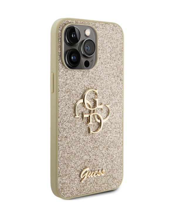 Guess Fixed Glitter Case with Big 4G Logo For iPhone 15 Pro Max - Gold