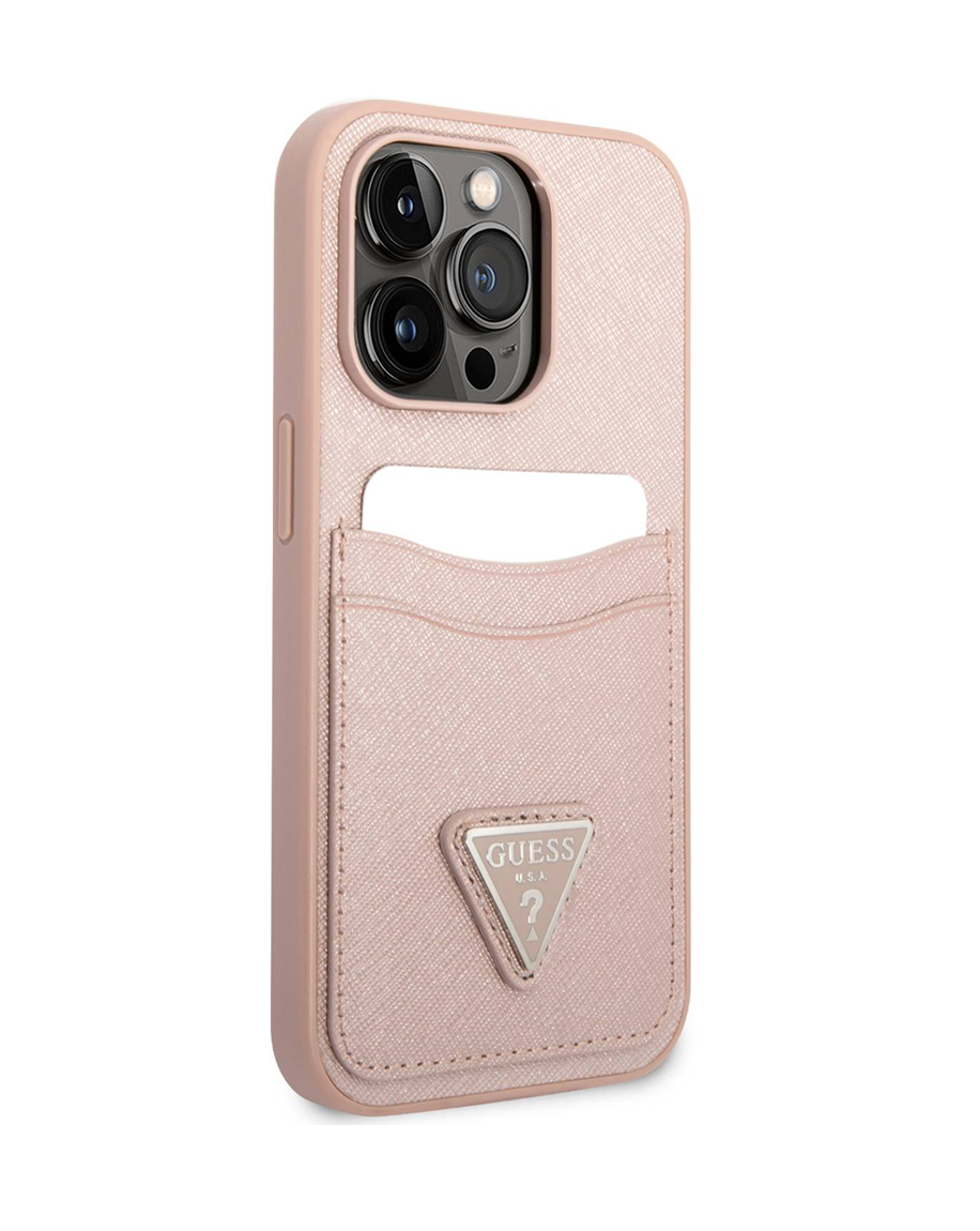 Guess Saffiano Double Card Hard Case for iPhone 14 Pro Max - Pink