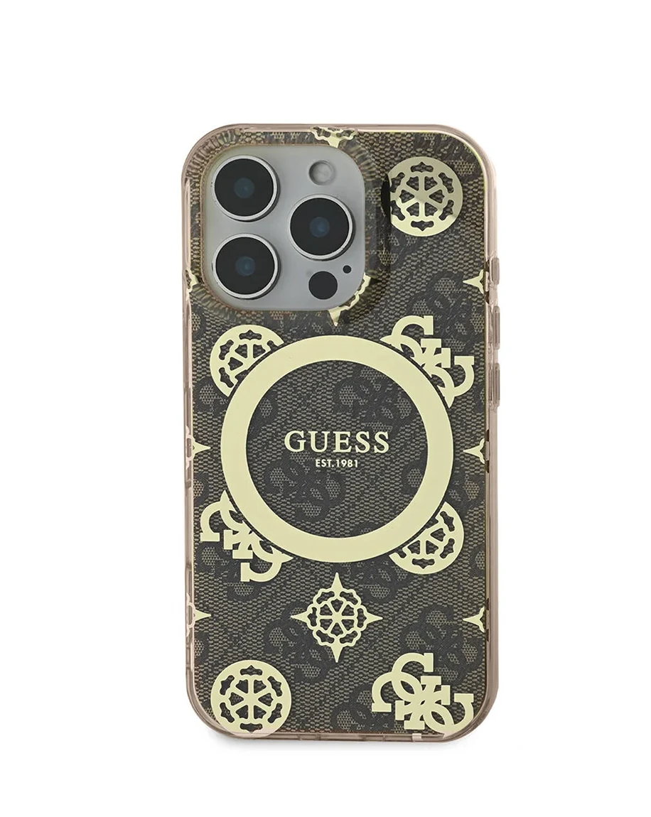 Guess MagSafe 4G Design HD Printing PC & TPU Case for iPhone 16 Pro, Lightweight, High-Quality Material, Drop Protection - Brown