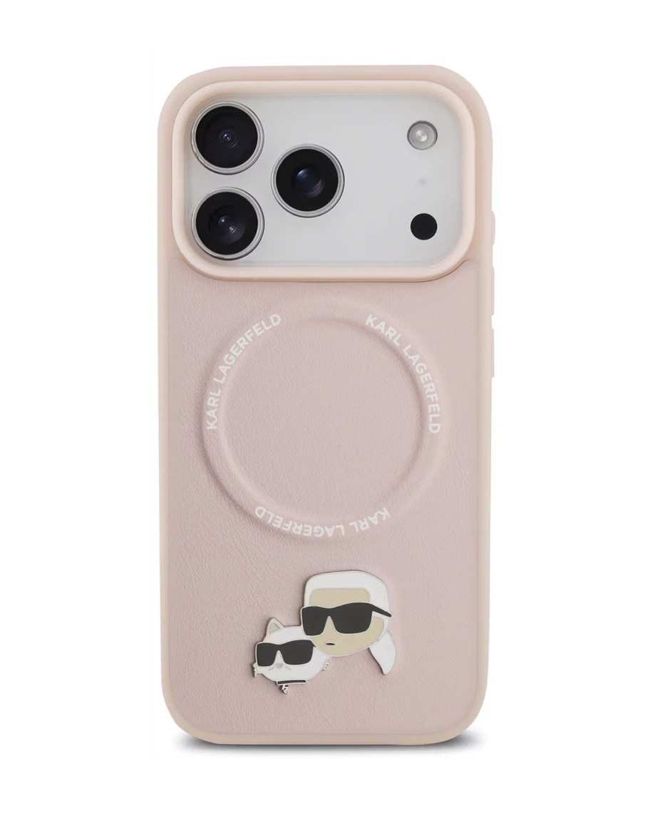 KARL LAGERFELD PU LEATHER CASE WITH KARL & CHOUPETTE HEAD PINS FOR IPHONE 17 PRO MAX - Pink