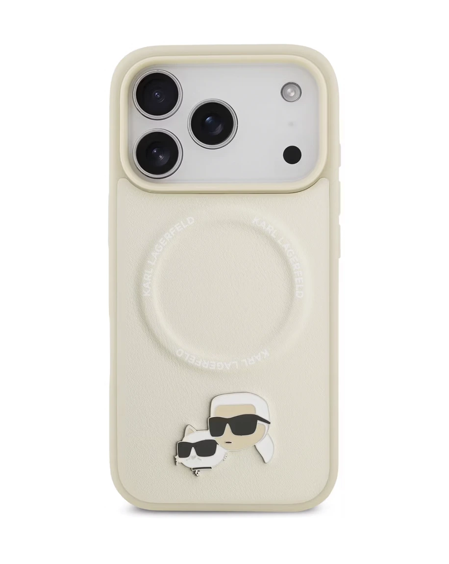 KARL LAGERFELD PU LEATHER CASE WITH KARL & CHOUPETTE HEAD PINS FOR IPHONE 17 PRO MAX - BEIGE